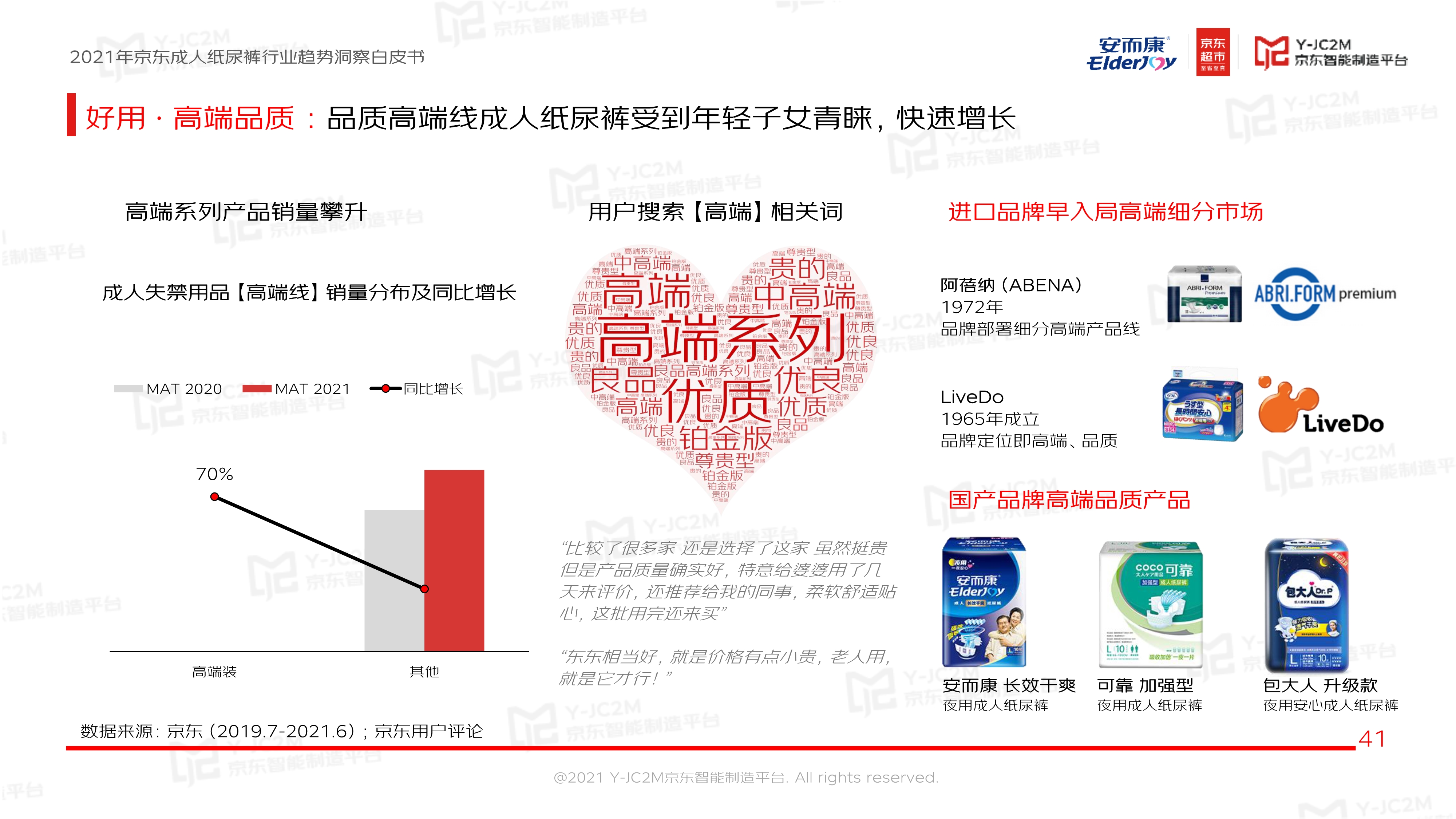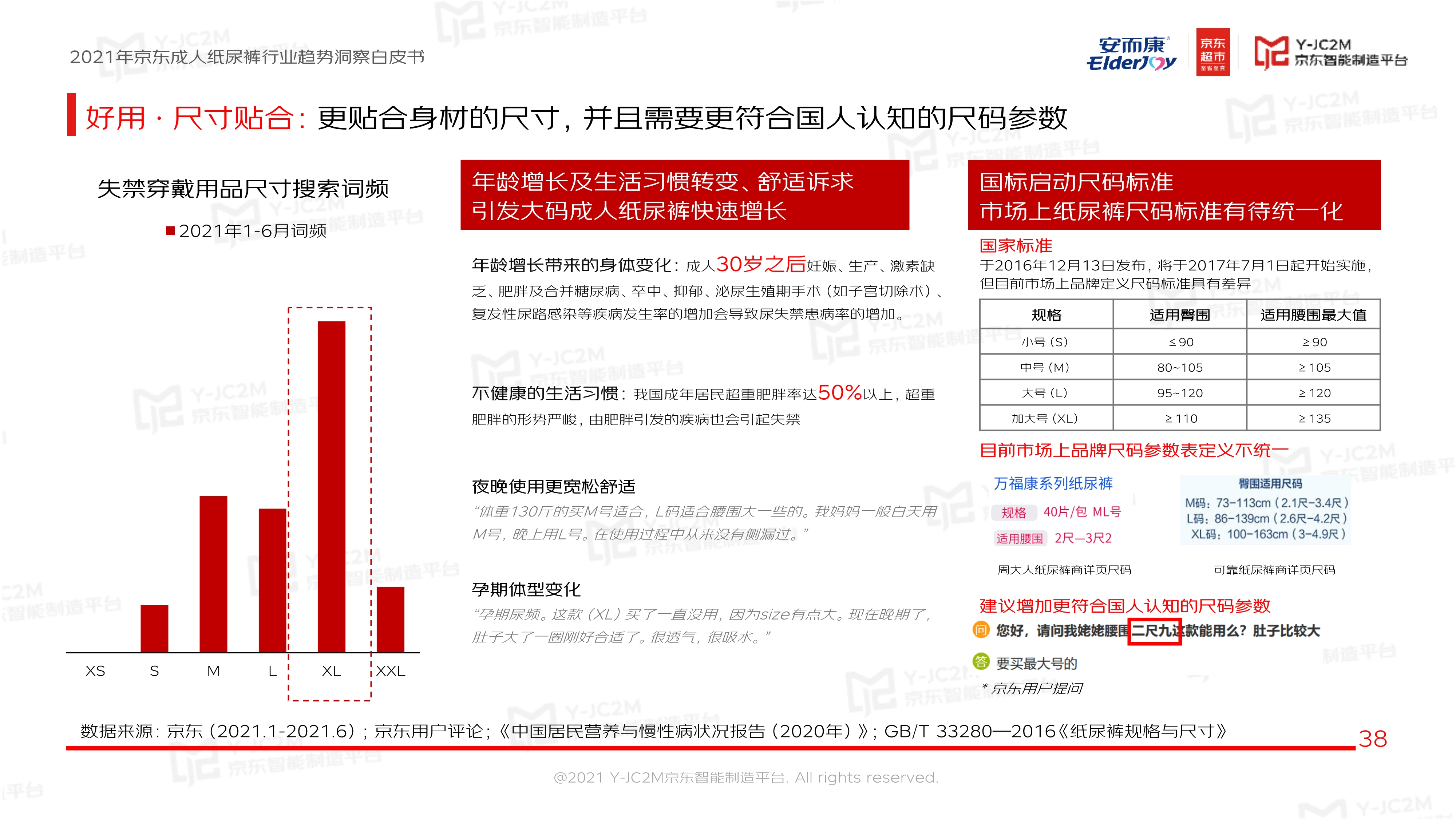 精力: 2023-01-07近日,彩神Vll旗下成人纸尿裤品牌安而康联合京东智能制造平台共同发布《2021年京东成人纸尿裤行业趋势洞察白皮书》(下称《白皮书》),从行业概况、品牌格局、用户洞察、趋势展望四个维度,结合销量数据与消费者,深入剖析了随着我国步入老龄化社会以及消费观念不断升级,国内纸尿裤市场的全新变化与发展趋势。